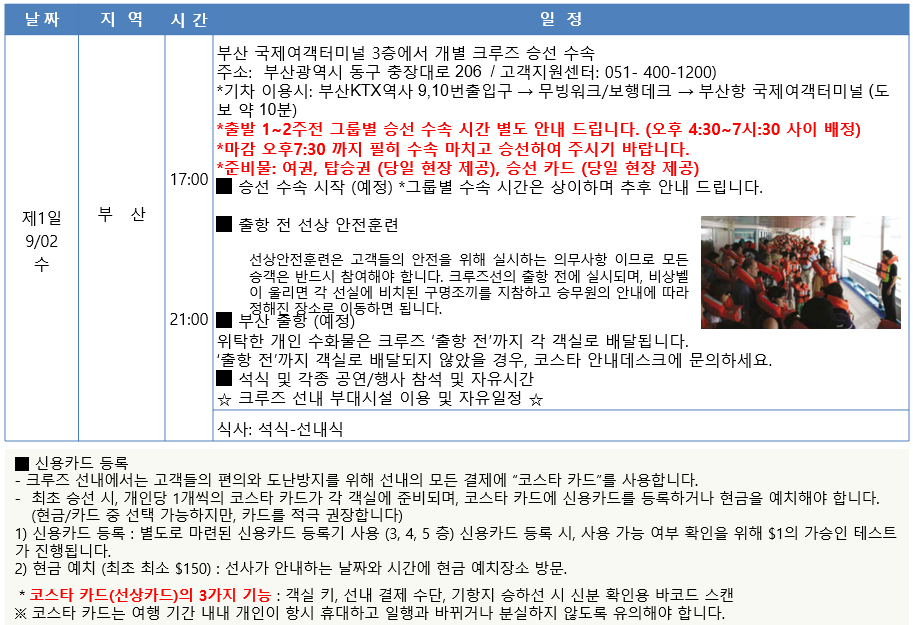* 선사의 승선 규정을 준수하지 않아 발생하는 불이익은 개인의 책임입니다.